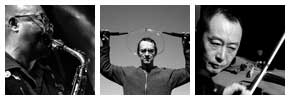 サイレント・ギターで独自スタンスの活動を続ける國仲勝男が、元祖電子楽器を操る原田節、唯一無二のアルト奏者林栄一、笛も演るチェリスト星衛の4人の独歩の音に神妙に立ち会う。 |
